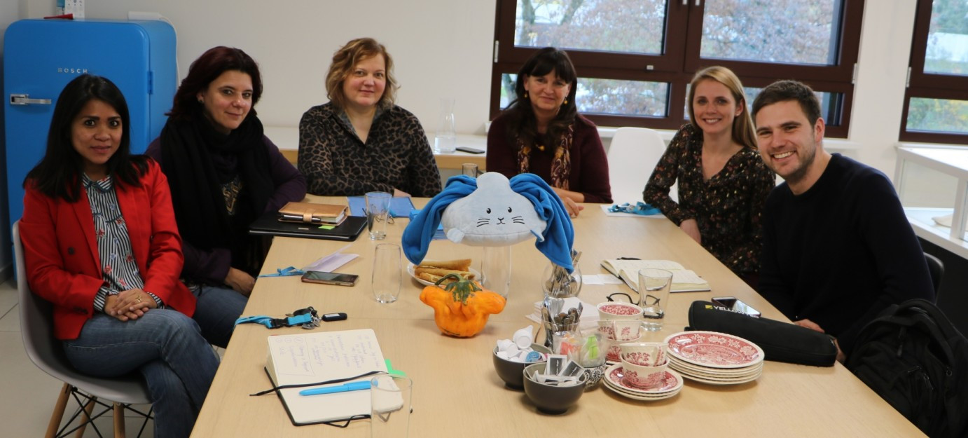 Op der Foto d'Vertriederinne vun SOS Kannerduerf Lëtzebuerg (vu lenks no rechts): Dareen Nelting, Claudia Schwinn, Karin Kirsch, Karin Kiesendahl, Isabelle Siebenaller an den Här Max Pletschette, Journalist beim Radio 100,7.