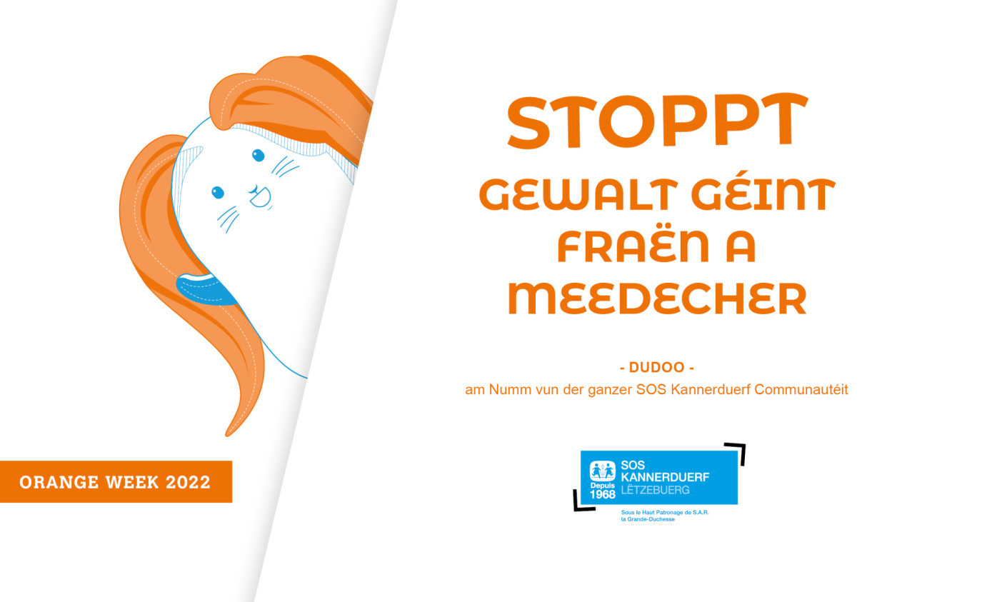 Du 25 novembre au 10 décembre, SOS Kannerduerf Lëtzebuerg soutient la "Orange Week", une initiative contre la violence envers les femmes et les filles organisée par le Conseil National des Femmes du Luxembourg.