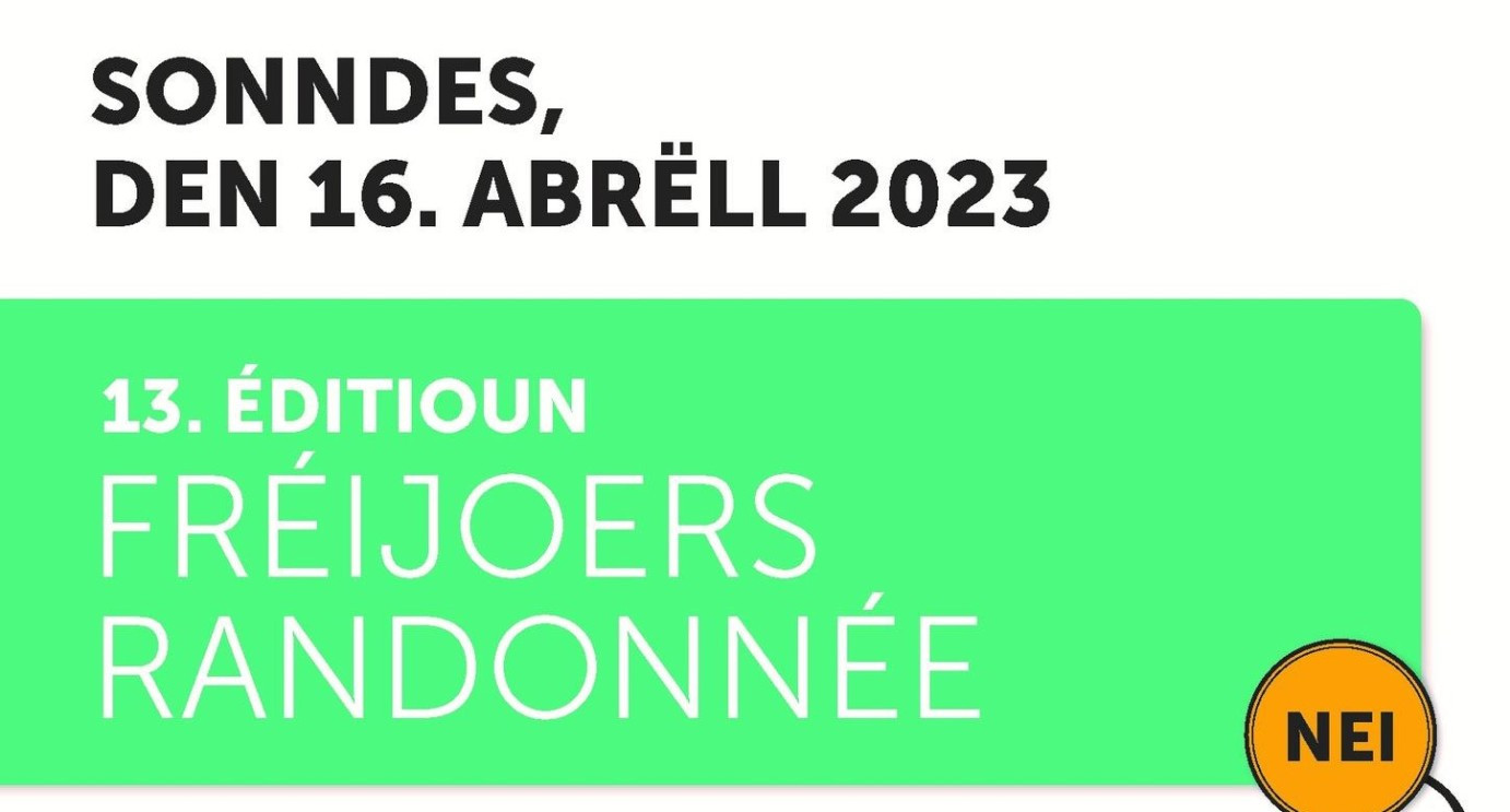 Le dimanche 16 avril 2023, la Fréijoersrandonnée aura à nouveau lieu. Cette année, avec un nouveau parcours de 20 km pour petits et grands, avec départ et arrivée à SOS Kannerduerf à Mersch.