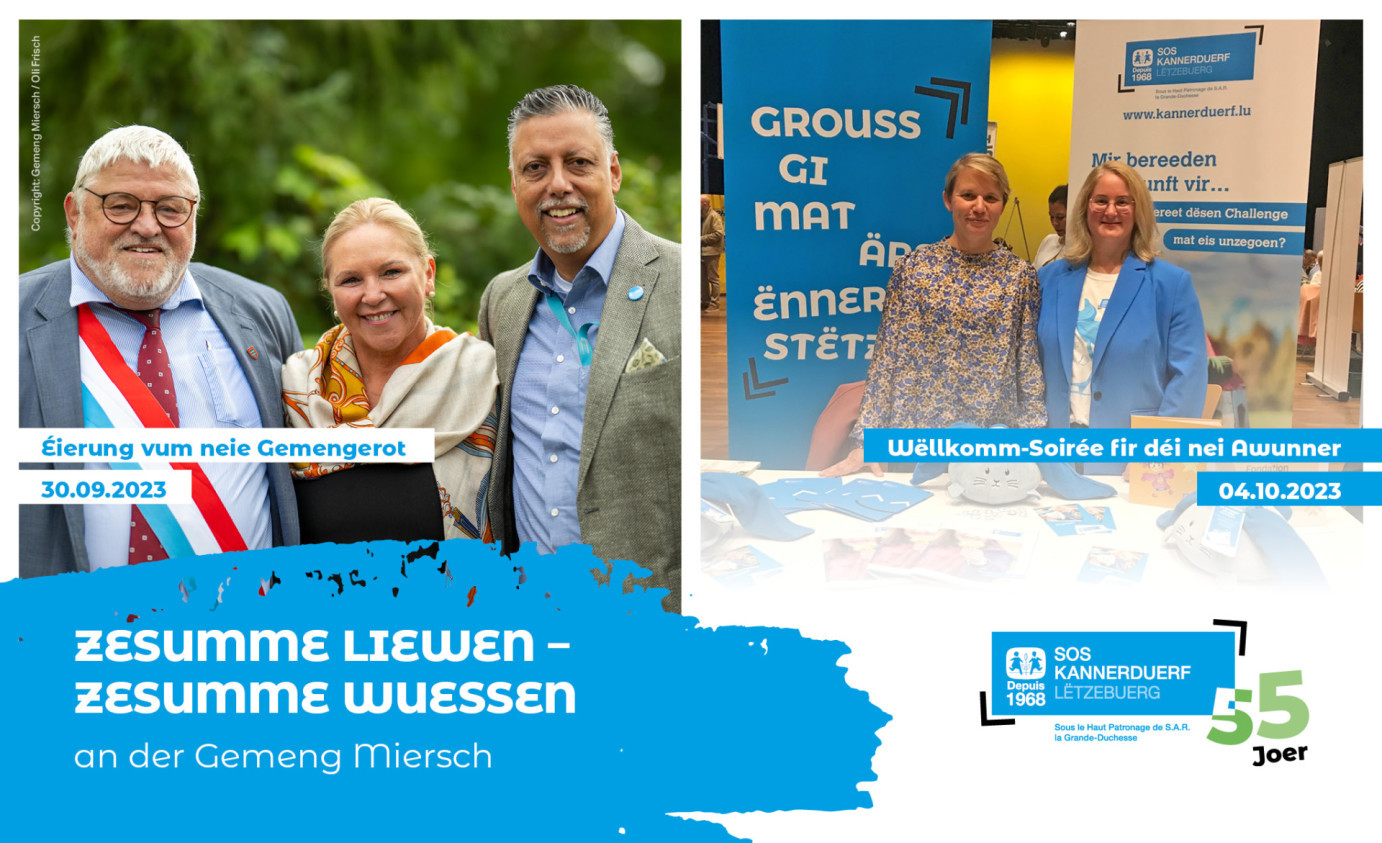 La promotion de la cohésion sociale dans les communes dans lesquelles nous sommes présents constitue pour nous un élément important de notre engagement en faveur des enfants et des jeunes. Un échange intensif et régulier avec les responsables et les citoyens de la commune en fait partie. Ces derniers jours, nous avons eu l'occasion d'échanger avec les citoyens de la commune de Mersch à l'occasion de divers événements conviviaux !