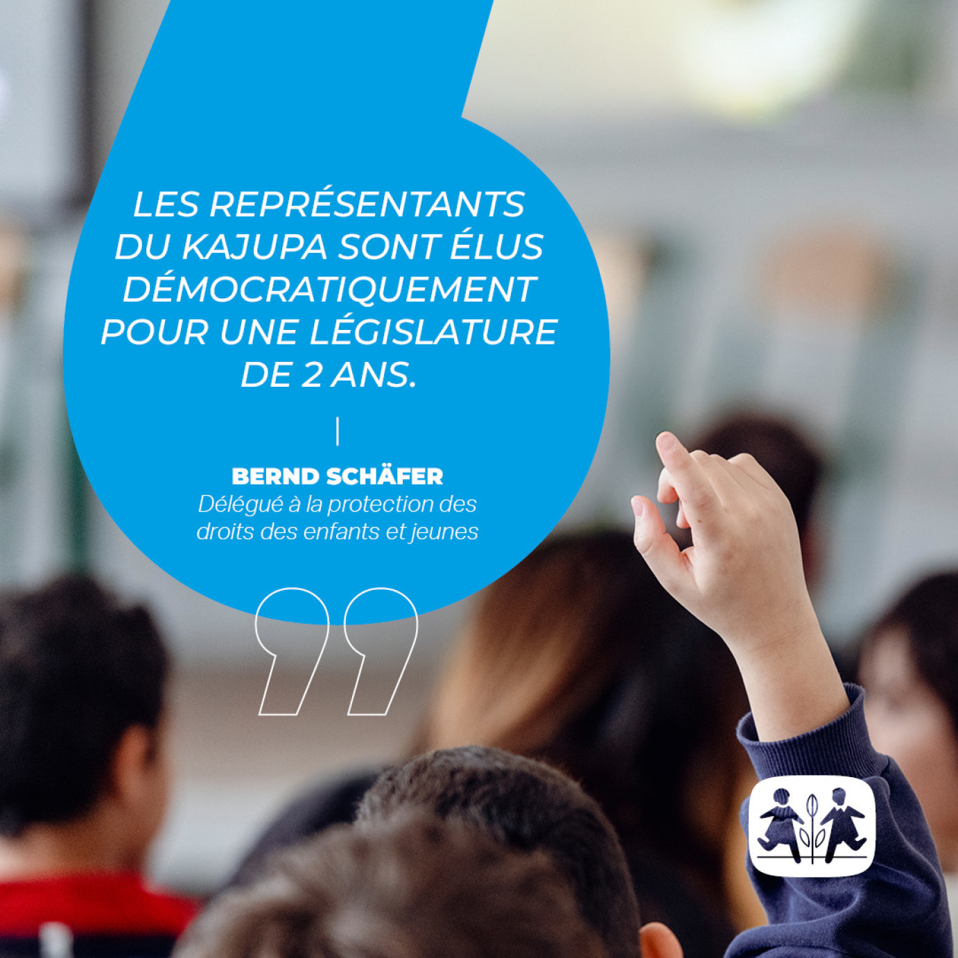 The Fondation Lëtzebuerger Kannerduerf continuously works, through its commitment, to improve its child protection concept, promote children's rights, and ensure the widest possible participation of young people in care at the heart of its activities. A pioneering initiative in this regard, the first "Children and Youth Parliament" (KaJuPa) was established in 2019 within SOS Kannerduerf Lëtzebuerg. The role of "Child Protection Delegate" was created in parallel.
