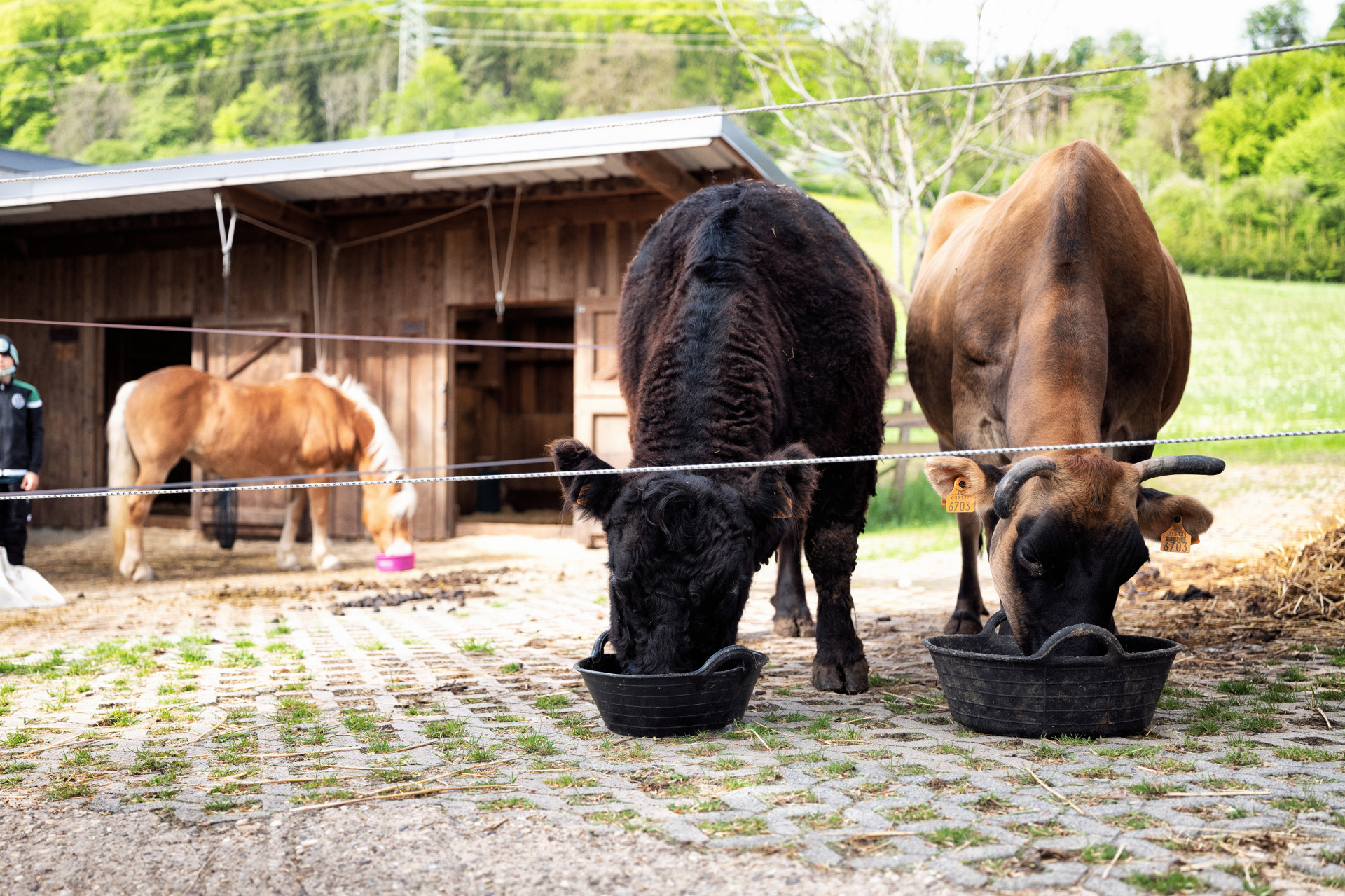 In addition to other craft content, the focus is on feeding the animals and maintaining the infrastructure. The highly ritualised feeding procedure, which must be oriented to the herd hierarchy, is a model for training in compliance with the rules and in the proper management of hierarchies.
